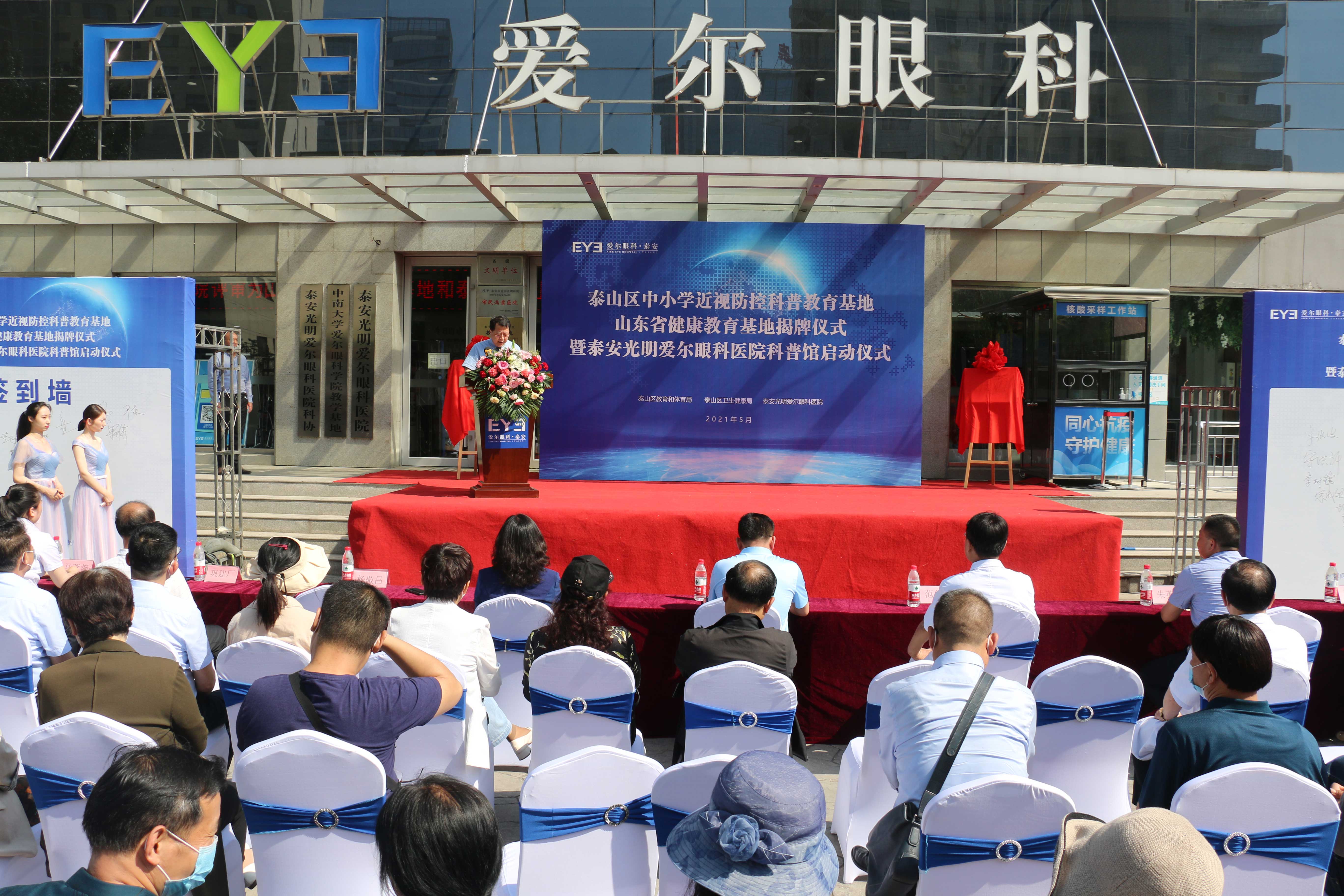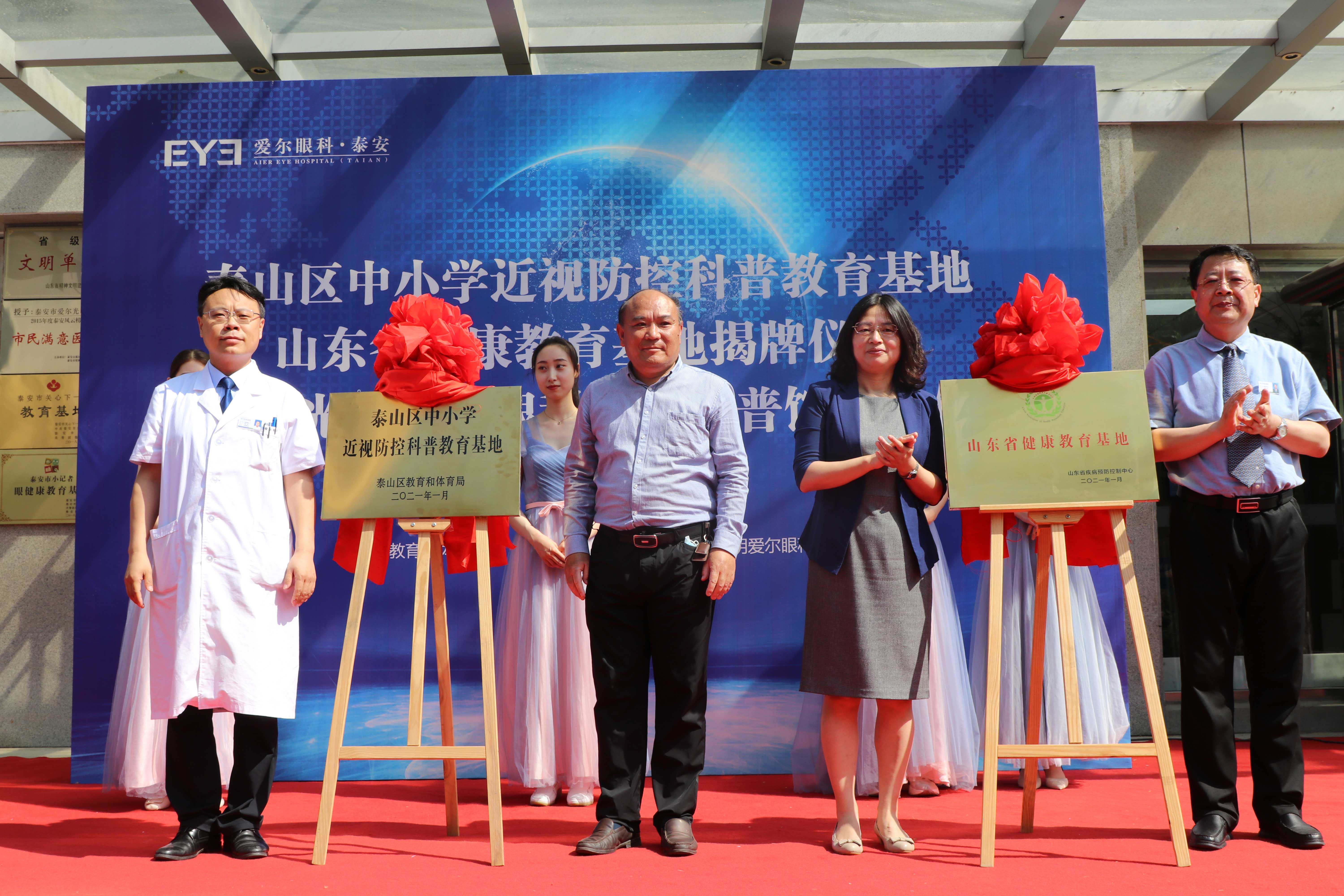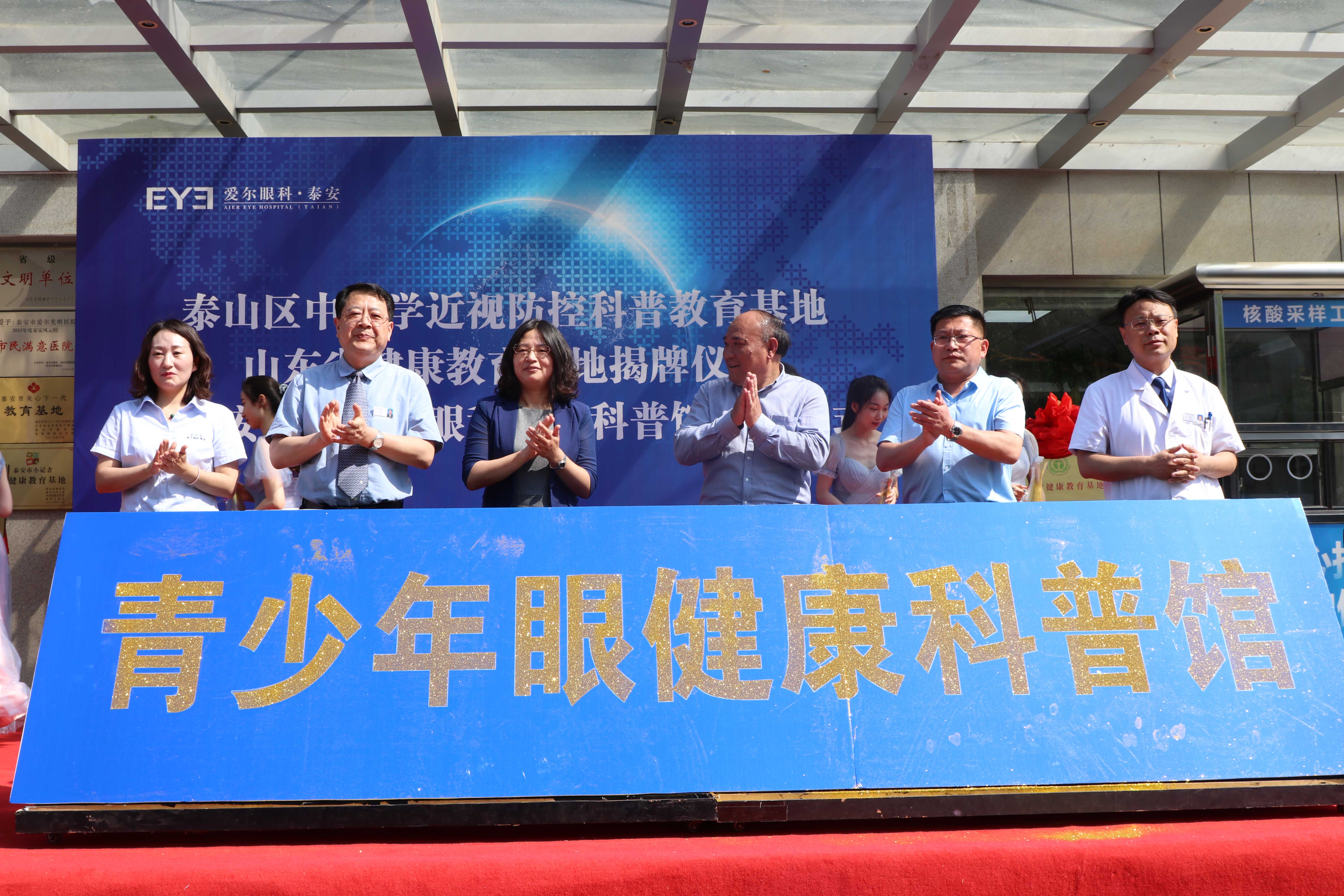 ? ? ? ?九點(diǎn)二十分,“山東省健康教育基地”和“泰山區(qū)中小學(xué)近視防控科普教育基地”正式揭牌。隨后,泰山區(qū)衛(wèi)生健康局黨組成員、副局長(zhǎng)寧方莉、泰山區(qū)教育和體育局副局長(zhǎng)高京杰、泰山區(qū)疾病預(yù)防控制中心副主任梁洪濤、泰安光明愛爾眼科醫(yī)院CEO楊敬昌、院長(zhǎng)范傳峰、社會(huì)公益部主任王海燕登臺(tái),宣布泰安市眼健康科普館正式啟動(dòng),并向市民免費(fèi)開放。